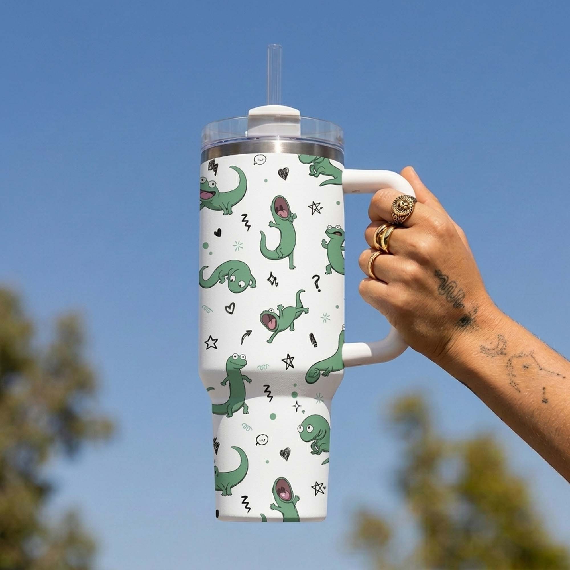 Tom the Lizard 40oz Tumbler with Handle
